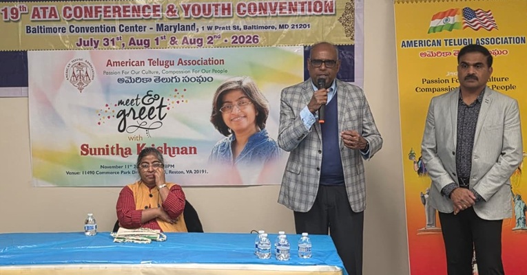 The event was attended by ATA leadership, including Sudhir Damidi (Conference Director), Regional Coordinators Zeenath Kundoor, Partha Byreddy, and Krishna Chethireddy, Literary Chair, Venu Naksjatram, Seva Co-Chair, coordinator Ramesh Bheemreddy, and women advisors and members Lavanya Ravulapalli, Kavita Challa, and Avanthika Nakshatram.