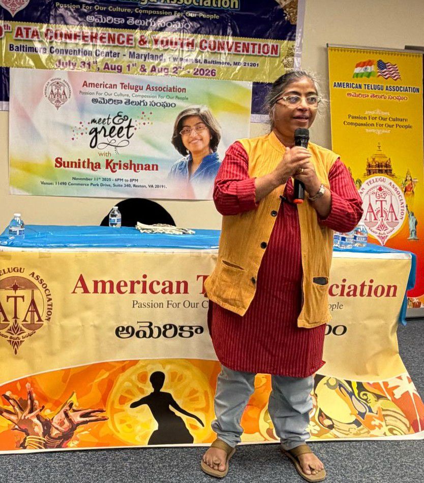 Washington DC: The American Telugu Association (ATA) organized a Meet and Greet event with Padma Shri Dr. Sunitha Krishnan, a globally recognized human rights activist and the Founding Chief Functionary of Prajwala, an organization devoted to eradicating sex trafficking and rehabilitating survivors.