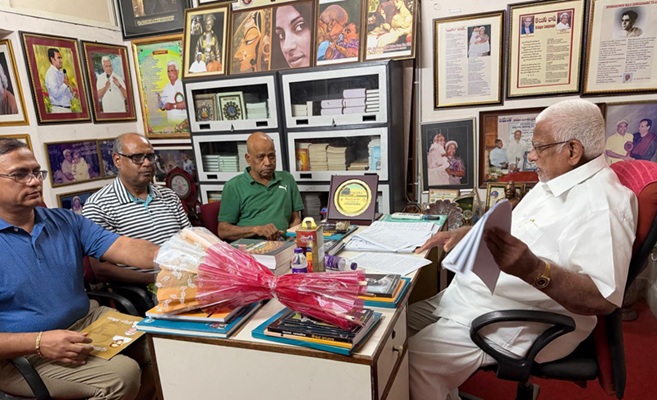 Hyderabad: ప్రముఖ విద్యావేత్త, తెలుగు సాహిత్యవేత్త (Literary Scholar) మరియు తెలుగు అకాడమీ మాజీ డైరెక్టర్ అయిన డా. వెల్చల కొండల్ రావు గారిని హైదరాబాద్లోని విశ్వనాథ సాహిత్య పీఠం (Viswanatha Sahitya Peetham) లో అమెరికన్ తెలుగు అసోసియేషన్ (ATA) బృందం మర్యాదపూర్వకంగా కలుసుకుంది.