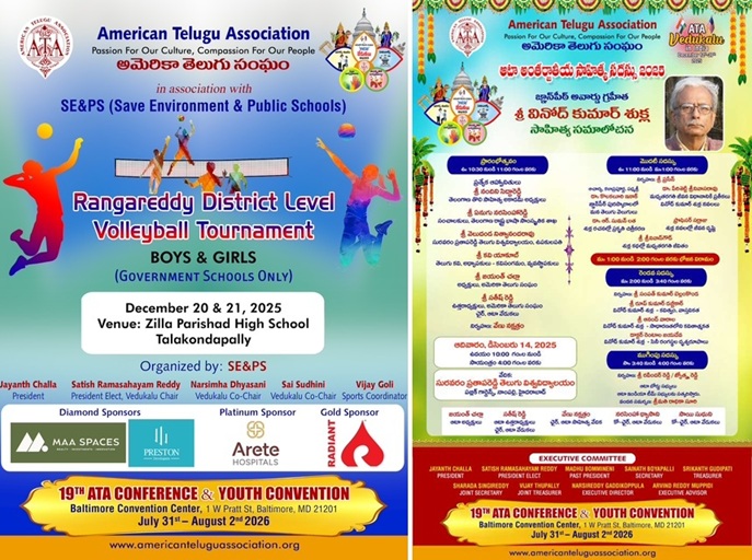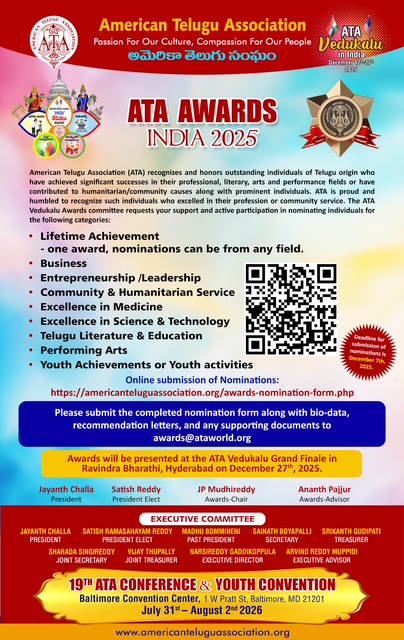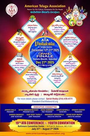 డిసెంబర్ 27: గ్రాండ్ ఫినాలే రవీంద్ర భారతి లో – సాంస్కృతిక కార్యక్రమాలు మరియు ఆటా అవార్డ్స్ (ATA Awards) ప్రధానం.