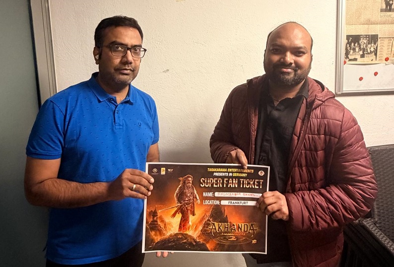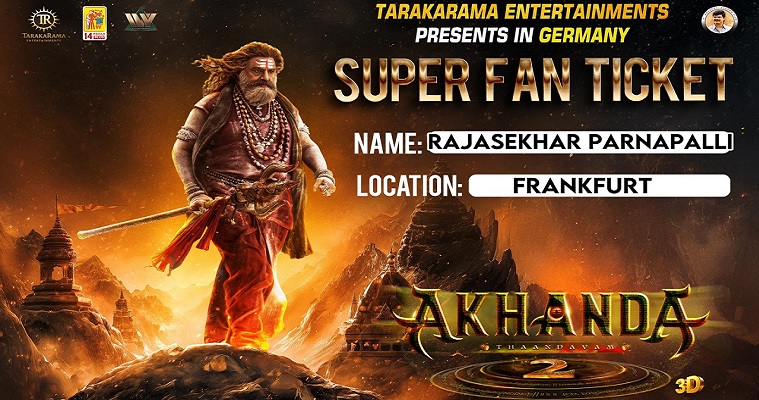 అఖండ తాండవం ఎలా ఉండబోతుందో చూడటానికి ఎంతో ఆసక్తిగా ఎదురు చూస్తున్నామని తెలిపారు. ఈ ఫ్యాన్ టికెట్స్ తర్వాతి రోజుల్లో మ్యూనిక్ (Munich), స్టుట్గార్ట్ (Stuttgart), డ్యుసెల్డార్ఫ్, న్యూరెంబర్గ్ నగరాల్లో కూడా అత్యంత భారీ ధర చెల్లించి కొన్న అభిమానులను ఇలాగే వెల్లడించబోతున్నామని సుమంత్ కొరపాటి తెలిపారు.