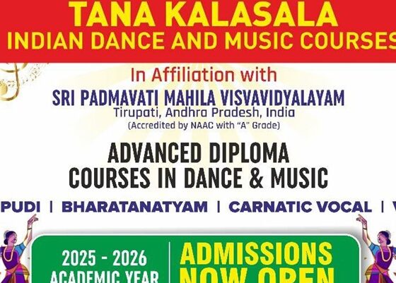 Atlanta, Georgia: ఉత్తర అమెరికా తెలుగుసంఘం (TANA) అమెరికాలోని మన స్టూడెంట్ల కోసం తిరుపతిలోని శ్రీ పద్మావతి మహిళా విశ్వవిద్యాలయం (Sri Padmavati Mahila Visvavidyalayam) సహకారంతో కూచిపూడి, భరతనాట్యం, కర్ణాటక గాత్రం మరియు వీణలలో...