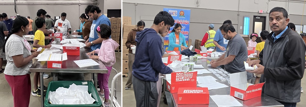 సుమారు 30 మంది NATS (North America Telugu Society) వాలంటీర్లు ఏకధాటిగా రెండు గంటల పాటు శ్రమించి, మొత్తం 5,766 పౌండ్ల (సుమారు 2.88 టన్నుల) ఆహార పదార్థాలను వర్గీకరించి, ప్యాకింగ్ ప్రక్రియను పూర్తి చేశారు.