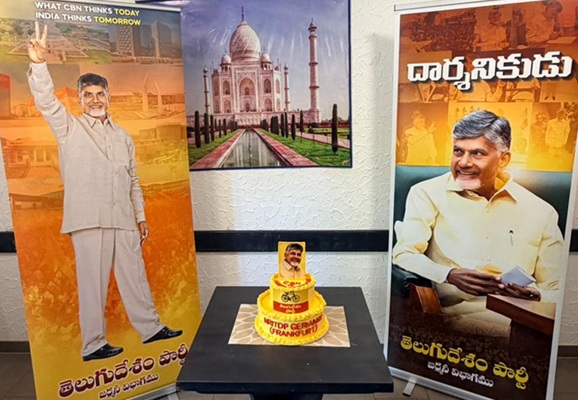Frankfurt, Germany: చంద్రబాబు గొప్ప దార్శనికుడు, దేశం గర్వించదగ్గ నేత అని జర్మన్ తెలుగుదేశం నాయకులు శ్రీకాంత్ కుడితిపూడి కొనియాడారు. 20-4-2026 ఆదివారం జర్మనీలోని ఫ్రాంక్ఫర్ట్ నగరంలో ఆంధ్రప్రదేశ్ ముఖ్యమంత్రి చంద్రబాబునాయుడు జన్మదిన వేడుకలను కేక్ కట్ చేసి, బెలూన్లు ఎగురవేసి పండుగ వాతావరణంలో ఘనంగా నిర్వహించారు.
