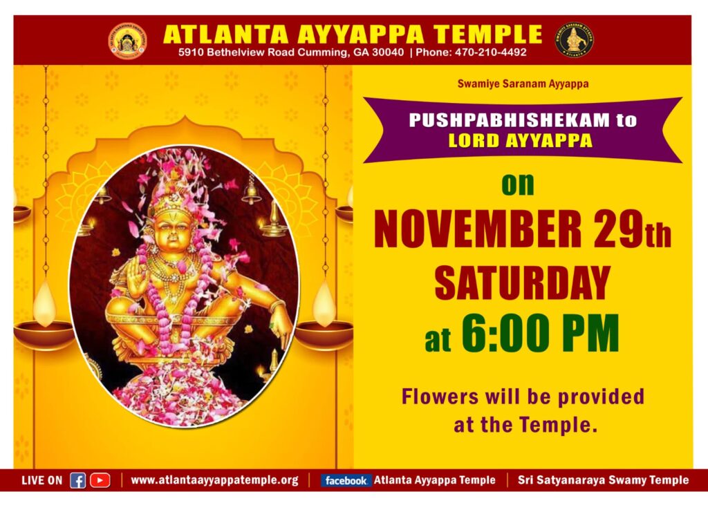 స్వామియే శరణం అయ్యప్ప: నవంబర్ 29న పుష్పాభిషేఖం @ Atlanta Ayyappa Temple