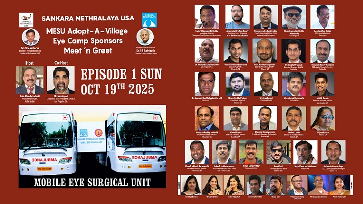 Sateesh Kumar hosted a MESU camp in Vinjamooru to honor his father, Segu Subbarao’s 75th birthday. Subbarao, a former Lions Club President, helped with hospitality. The camp screened 878 patients and performed 170 surgeries—celebrating legacy through impactful service. Dr. Reddy Urimindi, Dallas-based Board of Trustees, hosted a successful event spotlighting Sankara Nethralaya’s ecosystem—team-building, sponsor engagement, and skill-sharing.