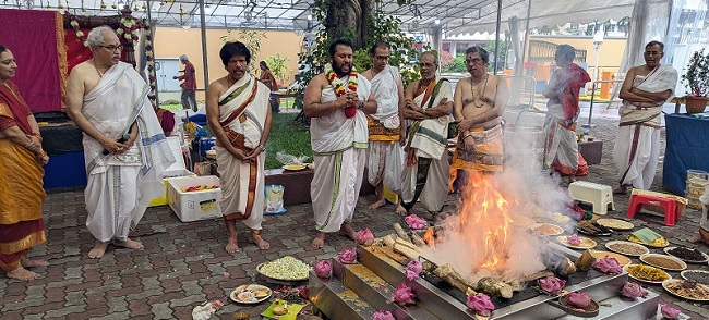 Singapore: సింగపూర్ దక్షిణ భారత బ్రాహ్మణ సభ (SDBBS) ఆధ్వర్యంలో 28 సెప్టెంబర్ 2025 తేదీన దేవి కృపను స్మరించుకుంటూ చండీ హోమ మహోత్సవం ఘనంగా జరిగింది. సుమారు 350 మంది భక్తులు పాల్గొని, ఈ పవిత్ర హోమం ద్వారా చండీదేవి (Chandi Devi) అమ్మ వారి ఆశీర్వాదాలను పొందారు. దేవి అనుగ్రహం కోసం ఈ చండీ హోమాన్ని సభ 30 సంవత్సరాలుగా నిరంతరంగా నిర్వహిస్తూ వస్తోంది.