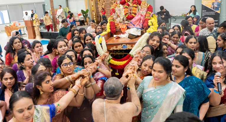 అధ్యాత్మిక శోభతో పులకించిన వాటర్లూ జెట్ కెనడా (JET Canada) నుండి విచ్చేసిన నరసింహాచారి గారు ప్రధాన అర్చకులుగా వ్యవహరించి, శాస్త్రోక్తంగా కళ్యాణ క్రతువును నిర్వహించారు. వారి దివ్యమైన మంత్రోచ్చారణలు, వివరణలు భక్తులను ఆధ్యాత్మిక లోకంలోకి తీసుకెళ్లాయి. దాదాపు 1000 మందికి పైగా ప్రవాస భారతీయులు ఈ వేడుకలో పాల్గొని స్వామివారిని దర్శించుకున్నారు.