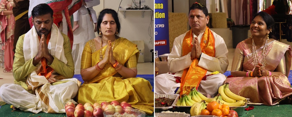 Atlanta, Georgia: గ్లోబల్ తెలంగాణ అసోసియేషన్ (Global Telangana Association – GTA) అట్లాంటా చాప్టర్ ఆధ్వర్యంలో తొలిసారిగా నిర్వహించిన “సామూహిక శ్రీనివాస కళ్యాణం” కార్యక్రమం మార్చి 22, 2026న కమ్మింగ్ (Cumming) నగరంలోని బంజారా బ్యాంక్వెట్స్‌ (Banjara Banquets) లో అత్యంత ఘనంగా, భక్తి పరవశంతో జరిగింది.