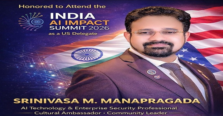 New Delhi, India: Srinivasa M. Manapragada, a Fortune 100 AI Technology & Enterprise Security Professional & Cultural Ambassador and Community Leader based in California, USA, will attend the India AI Impact Summit 2026 in New Delhi as part of the U.S. delegation.