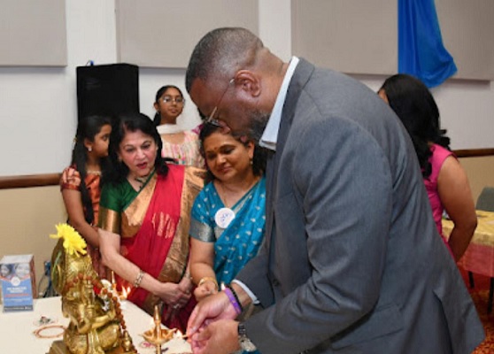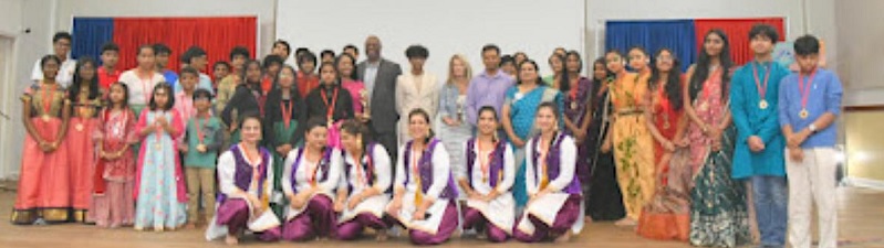 The program began with a traditional lamp-lighting ceremony and prayers by our Prajna students, setting a sacred and meaningful tone.We were honored to welcome esteemed guests, including: Shri Ramesh Babu Lakshmanan, Consulate General of India, Mr. Corey Jackson, CEO of Laurel Heights Hospital, Dr. Madhuri Seth, Mr. Pramod Sajja, CEO of Farm to Plate and Dr. Venkat from Cumming Dental.