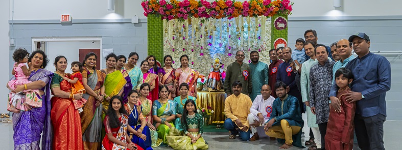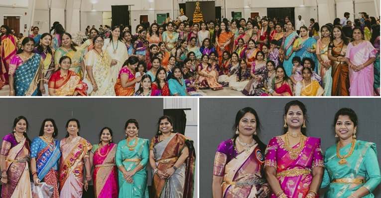 Attendees socialized in groups, women started playing Bathukamma until the arrival of our guest of honor, Sue Finkam, Mayor of Carmel City, along with distinguished guest Dr. Anita Joshi, City Council at 4:30PM. Upon their entrance, TTA leadership welcomed them, highlighted TTA’s activities on the video wall, and included them in the Bathukamma procession by Daff, appreciated sponsors, and Bathukamma play.