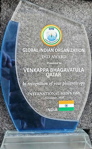 Qatar: గత 20 సంవత్సరాలుగా ఖతార్ (Qatar) లో నివసిస్తూ సమాజ సేవలో విశేష సేవలు అందిస్తున్న ప్రముఖ కమ్యూనిటీ నాయకుడు మరియు హ్యూమానిటేరియన్ విశాఖ (Visakhapatnam) వాసి శ్రీ వెంకప్ప భాగవతుల (Venkappa Bhagavatula) గారికి, ఖతార్తో పాటు అంతర్జాతీయ స్థాయిలో చేసిన సేవల గుర్తింపుగా ఇండోర్, మధ్యప్రదేశ్ లో జరిగిన GIO (గ్లోబల్ ఇండియన్ ఆర్గనైజేషన్) నాల్గవ అంతర్జాతీయ మహాసభలో..